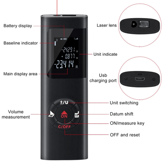 Mini télémètre laser intelligent, mesure infrarouge, USB, aste, portable