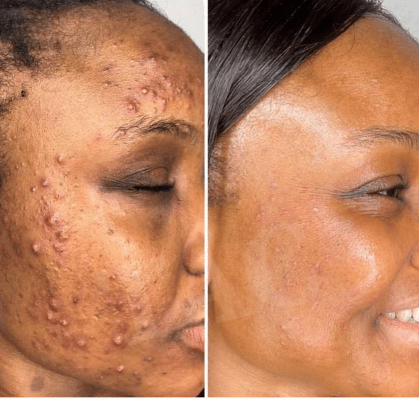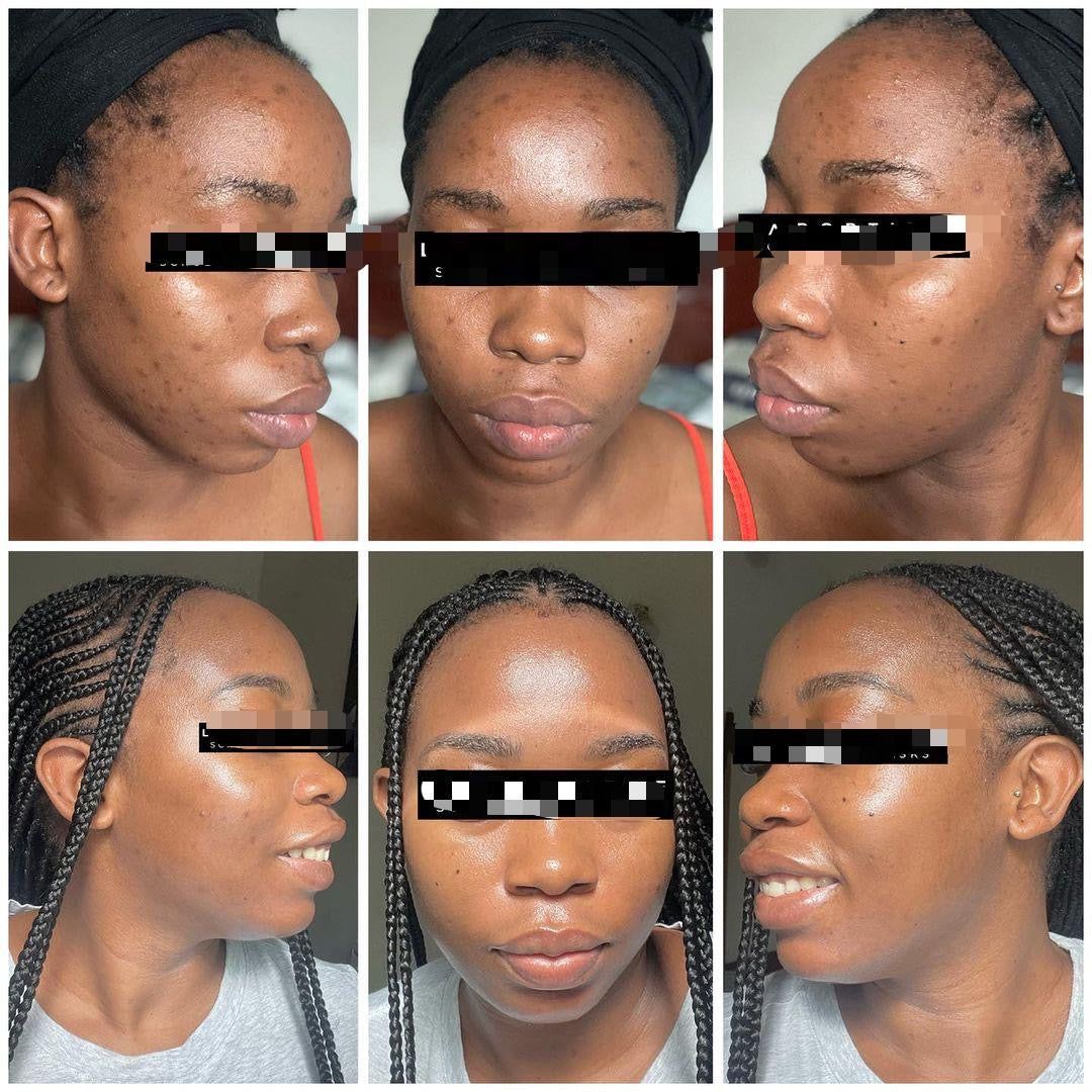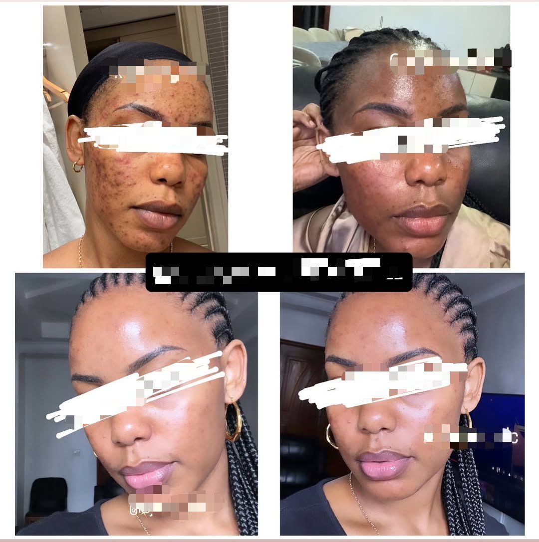 Ma peau était horrible avant de commencer à utiliser les produits, mais elle s'est éclaircie au bout de deux semaines.