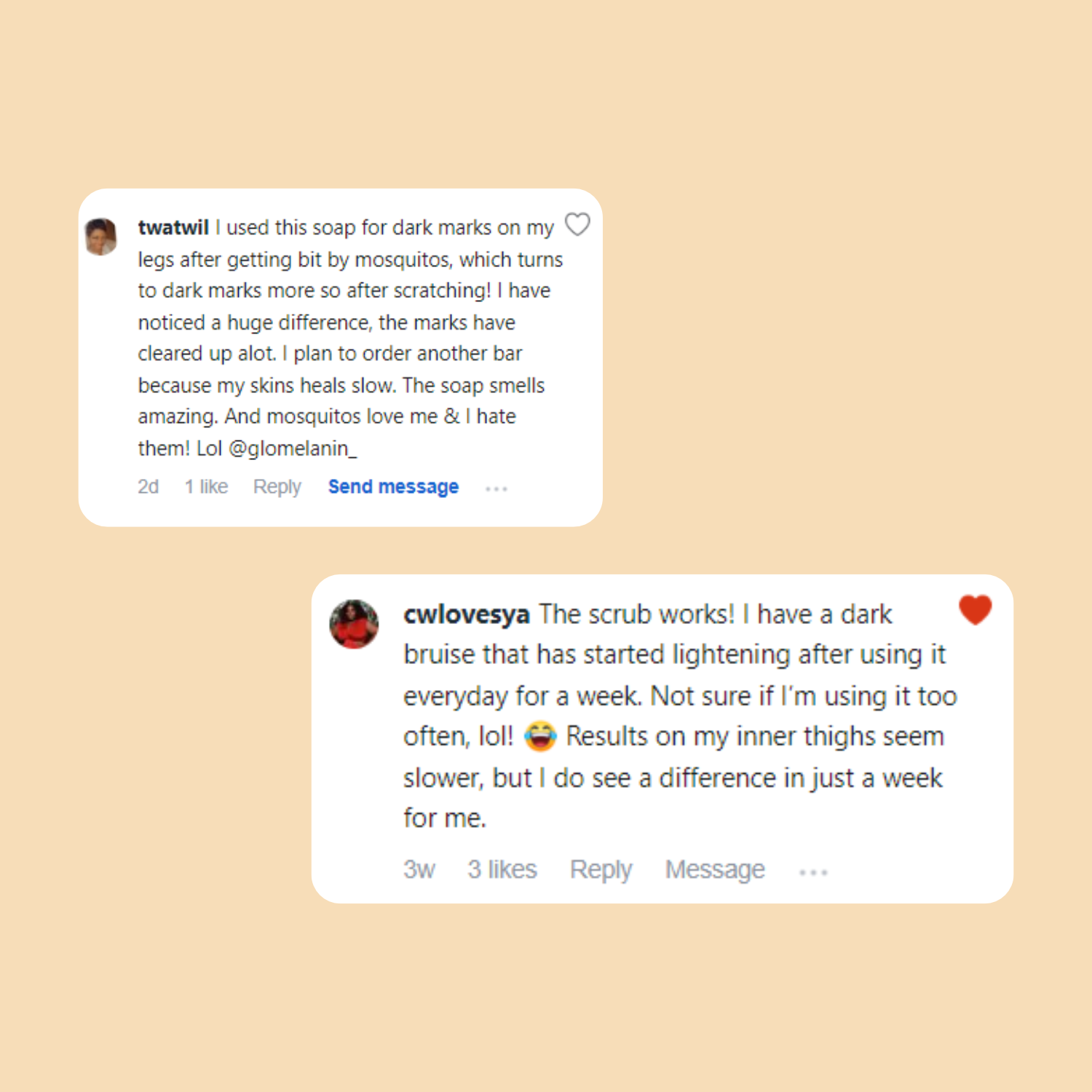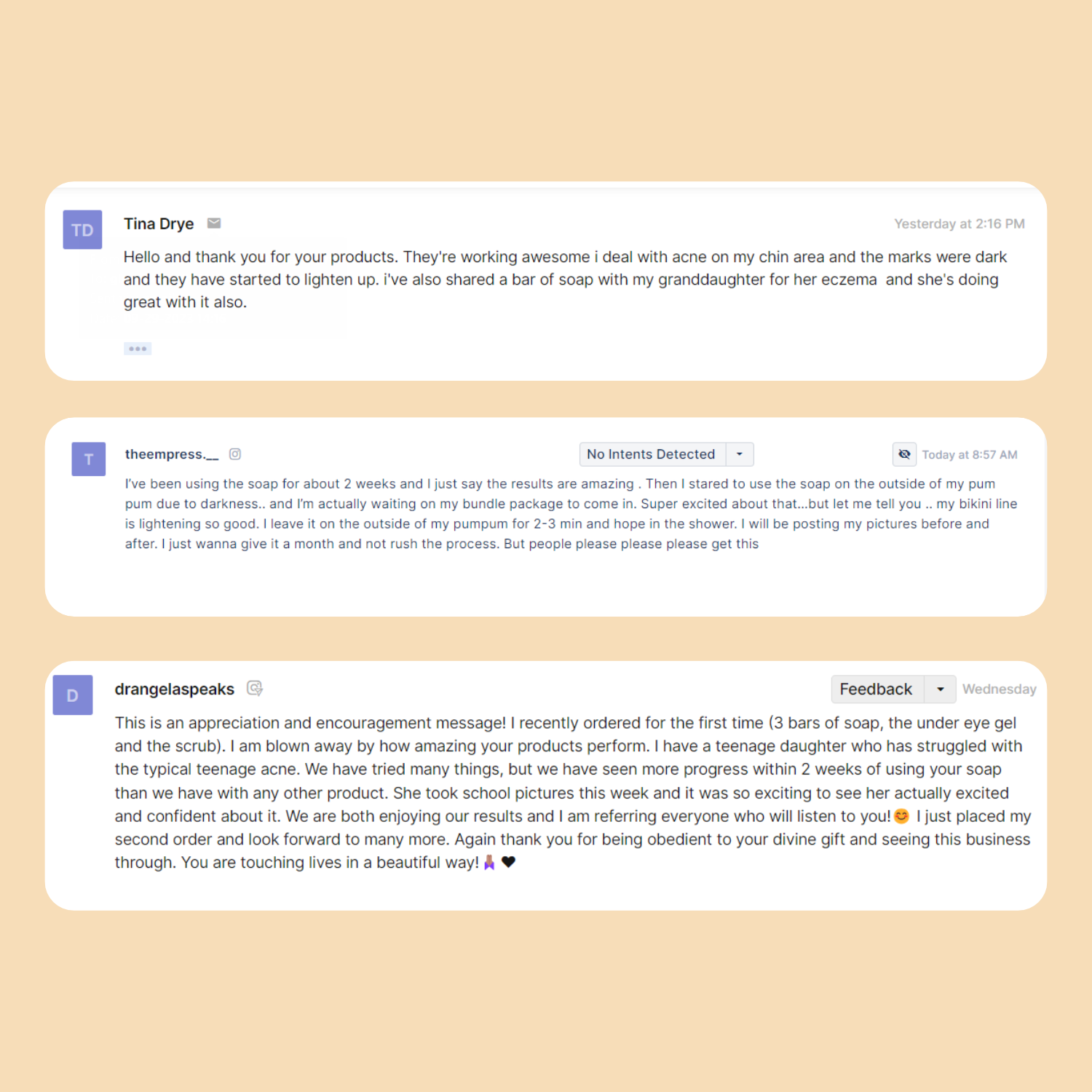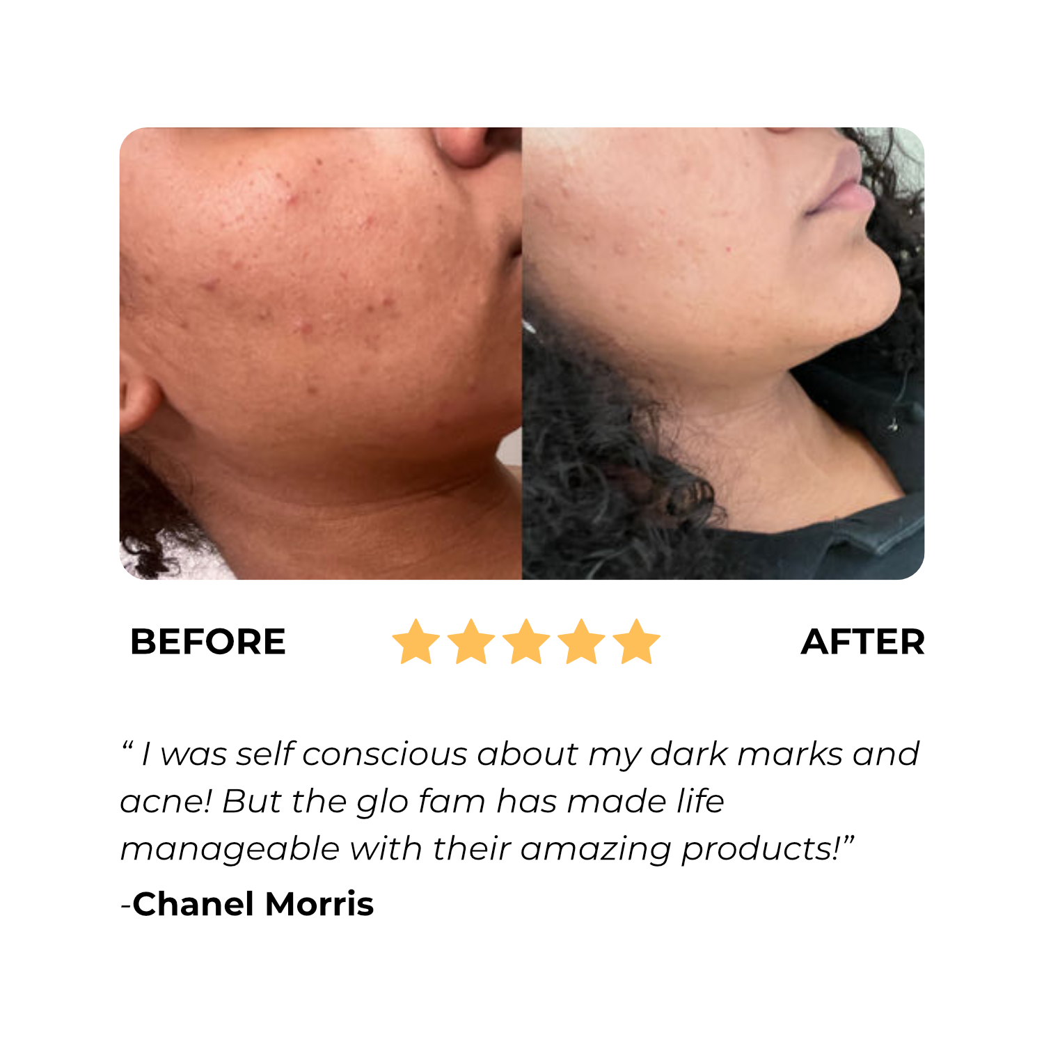 “ I am in love with your products. here are my before and after and still working on it .. i will get back to you when I reach to my skin goals lol 😉”